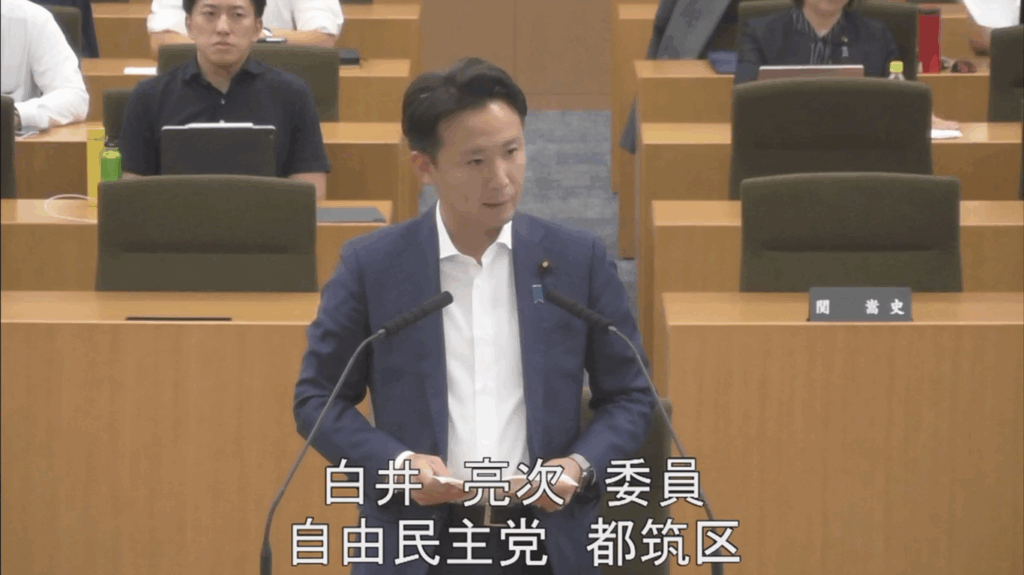 令和7年第3回市会定例会 決算第一特別委員会 局別審査1日目 白井亮次議員(都筑区)が資源循環局に対して質問いたしました。 2025.10.03 自民党市会議員団ニュース -白井議員の質問項目- 1 令和6年度の資源循環局の取組についての所感 2 循環型社会への移行に向けた資源循環局の取組 3 事業系食品ロス削減に向けた取組 4 フィリピン国セブ市への国際協力 5 喫煙禁止地区の取組 6 ポケモン・ウィズ・ユー財団と連携した街の美化の取組 7 地域防災拠点のトイレ対策 8 粗大ごみの自己搬入施設における利便性向上の取組 9 将来を見据えた焼却工場の整備 10 その他 ← 前の記事 次の記事 →